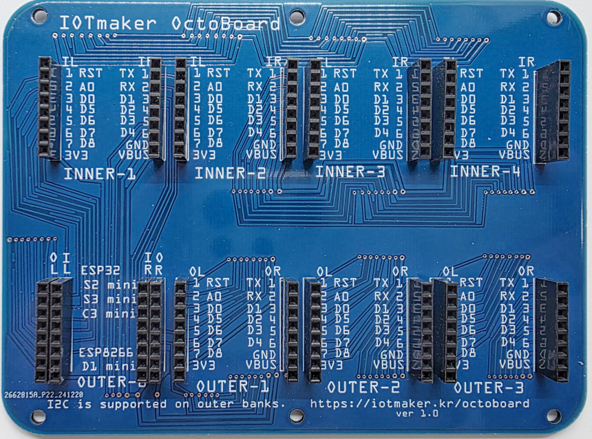 - 하단 슬롯에는 ESP32 S3/S2 mini의 바깥 핀이 연결됩니다.